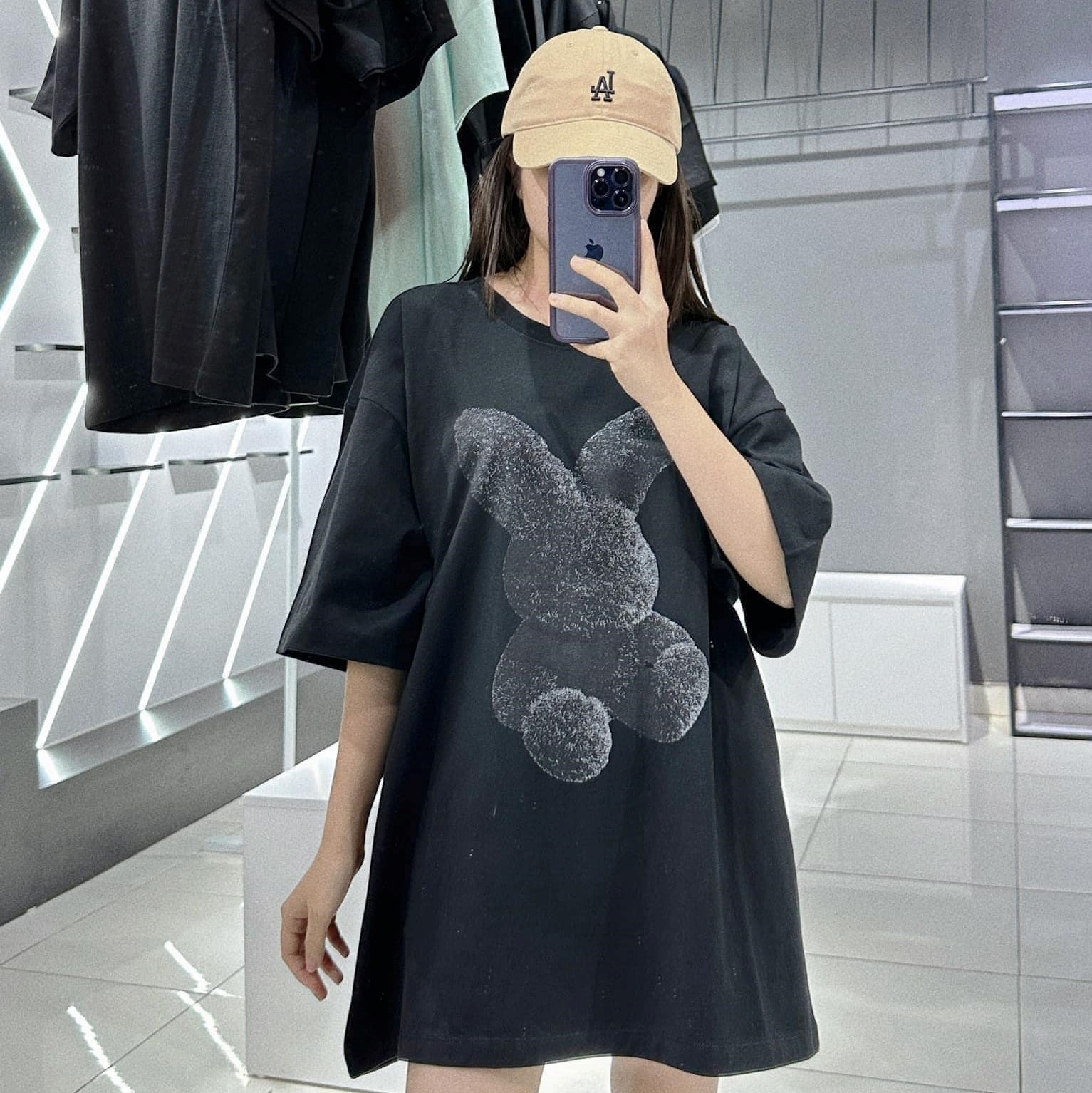 Kiểu dáng Áo Phông ADLV Fuzzy Rabbit Thỏ Màu Đen