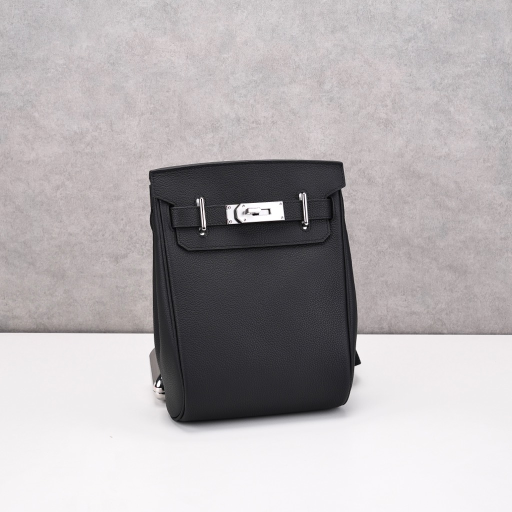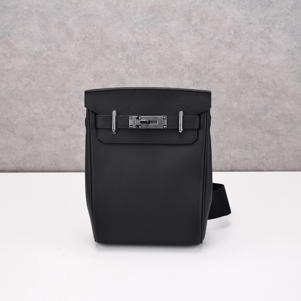 Balo có thiết kế form hộp đứng đặc trưng của dòng HAC, tạo cảm giác gọn gàng và rất sang khi đeo. Phần nắp gập phía trước kết hợp dây đai và khóa kim loại mang phong cách cổ điển đặc trưng của Hermes. Quai đeo vai được thiết kế chắc chắn, kết hợp với tay xách phía trên giúp có thể sử dụng linh hoạt như balo hoặc xách tay. Tổng thể thiết kế mang hơi hướng “luxury tối giản” rất được ưa chuộng hiện nay.