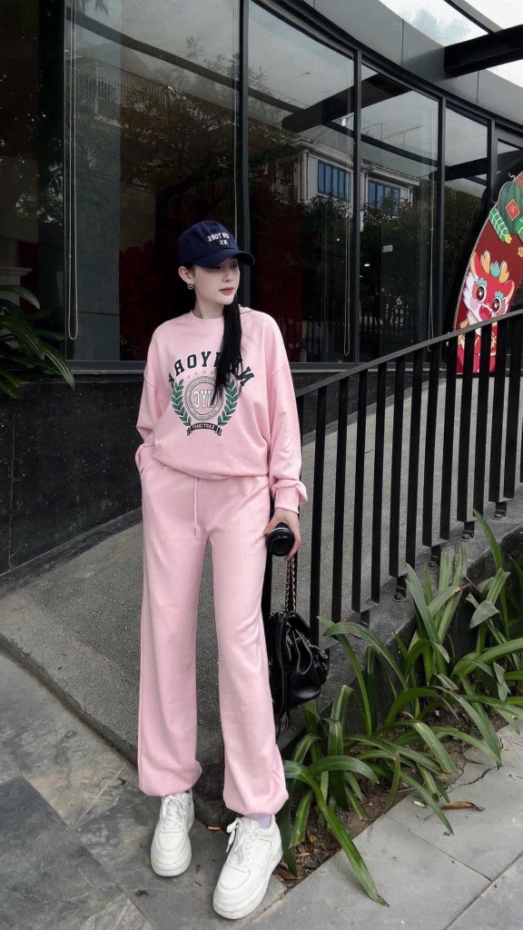 Điểm nhấn của bộ trang phục này chính là dòng chữ NEW YORK in nổi bật trên áo, tạo nên sự cuốn hút và cá tính riêng biệt. Chất liệu nỉ bông mềm mại, ấm áp giúp người mặc luôn cảm thấy thoải mái, đặc biệt thích hợp cho những ngày thời tiết se lạnh.