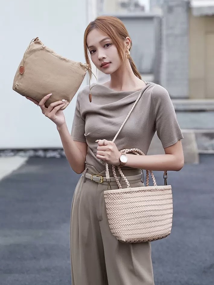 Điểm đặc biệt của Giỏ Đan Korea chính là kỹ thuật đan thủ công khéo léo, tạo nên những đường họa tiết đều đặn, chắc chắn và bền đẹp. Kết cấu giỏ cứng cáp nhưng vẫn giữ được sự mềm mại trong từng chi tiết. Phần quai xách được gia công chắc chắn, cân đối, mang lại sự thoải mái khi cầm tay hoặc đeo vai. Thiết kế size 26cm vừa vặn, đủ rộng để đựng các vật dụng cần thiết như ví, điện thoại, mỹ phẩm… mà vẫn giữ dáng gọn gàng, thanh lịch.
