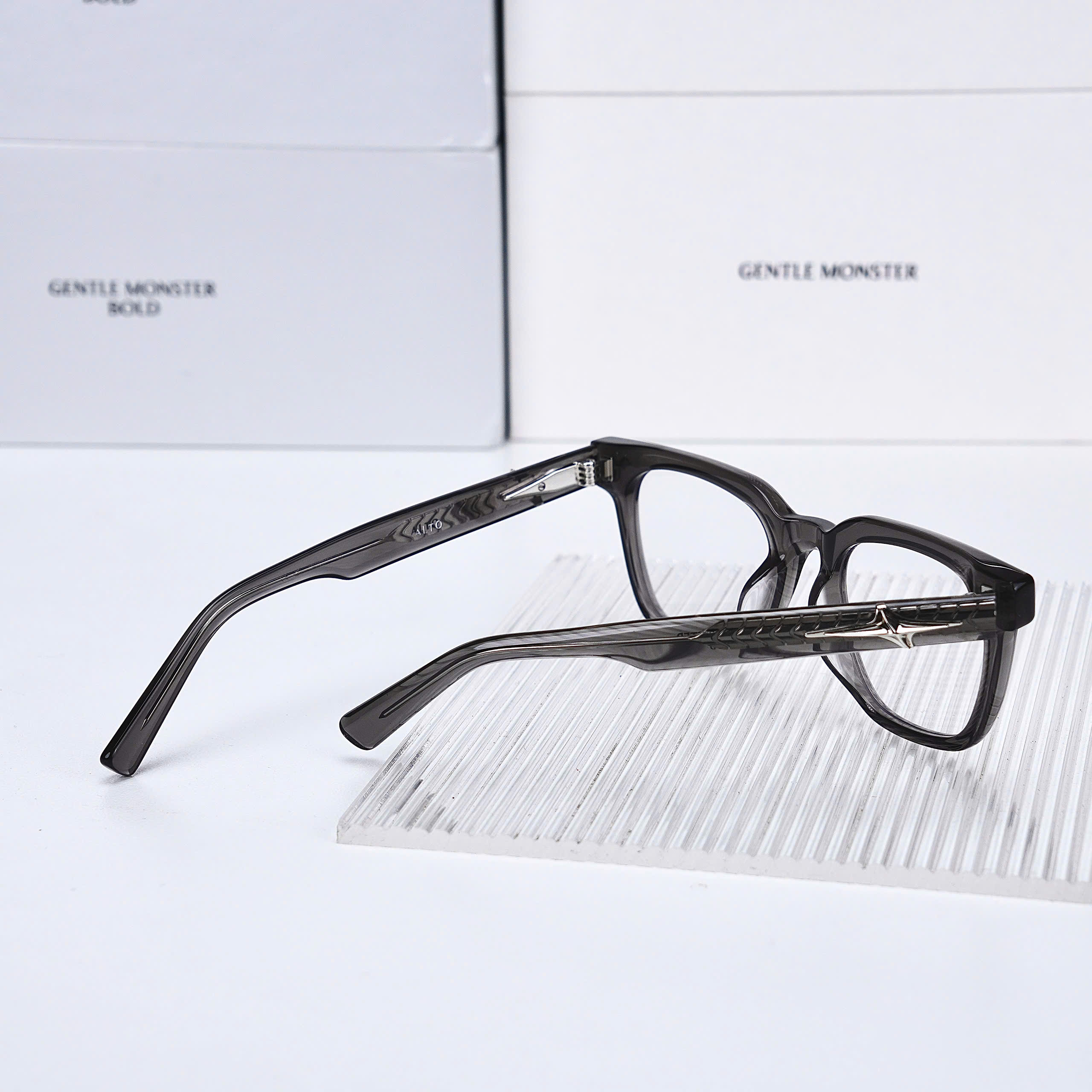 Bold Alto GC9 sở hữu form kính vuông bản lớn, một đặc trưng nổi bật của dòng Bold. Các đường nét được thiết kế dứt khoát và sắc sảo, tạo nên vẻ ngoài cá tính và rất “high fashion”. Phần gọng xám trong suốt mang lại cảm giác hiện đại và khác biệt so với những mẫu kính đen truyền thống, giúp tổng thể khuôn mặt trở nên nổi bật hơn khi đeo.