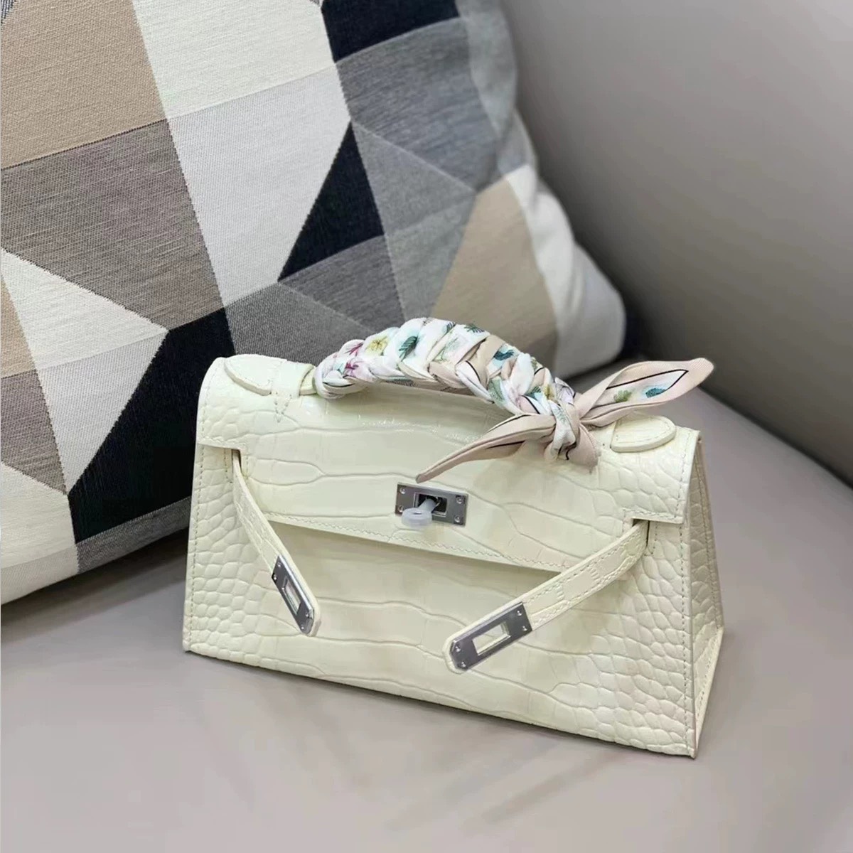 - Khóa Kim Loại: Thiết kế khóa kim loại trên túi là điểm nhấn nổi bật và chứng tỏ sự độc đáo của Hermes Kelly.