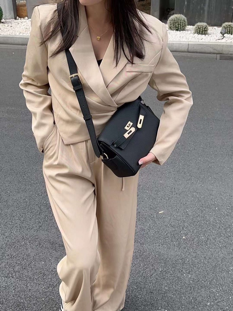 - Khóa kim loại vàng bóng là điểm nhấn tinh tế, thêm vào sự quyến rũ và thu hút cho túi xách.